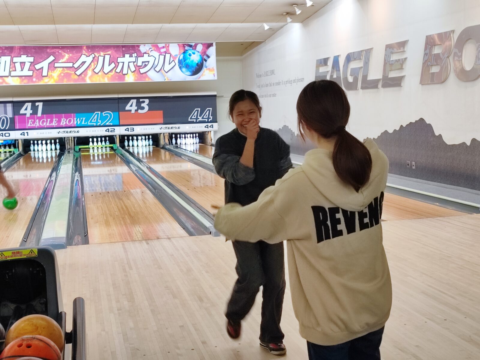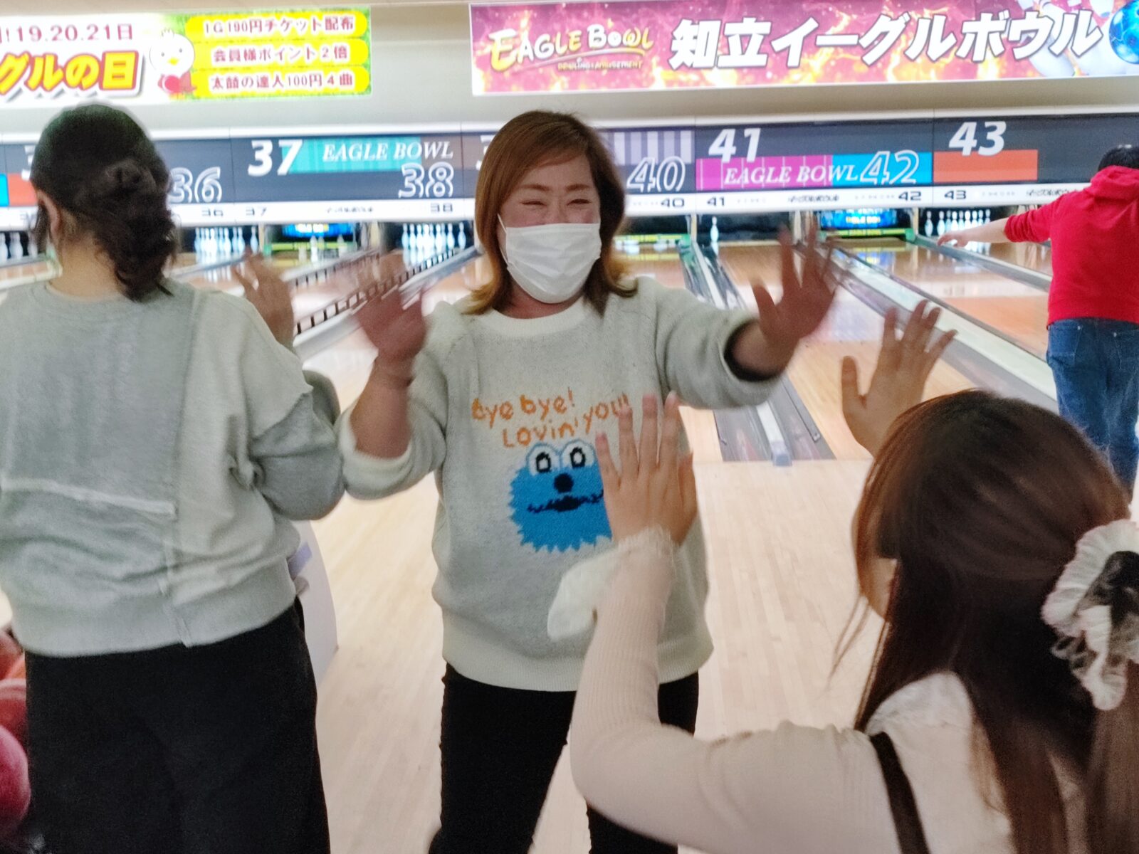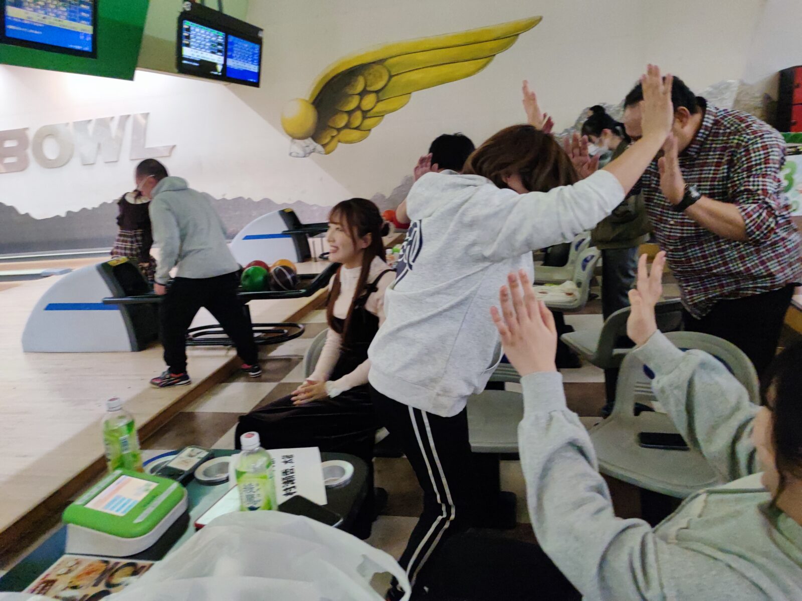 ストライクが出ればみんなでハイタッチして喜び、ガーターになれば励まし合い、会場は大いに盛り上がりました🤣